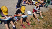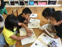 はじめは「?」と戸惑う子どもたちでしたが、その意味が理解できた子どもから「あぁ!」「なるほどね!」という歓声が上がっていました。風景を切り取り、奥行きを意識しながら表現する技法を活用しながら、思い出を形にしていってほしいと思います。