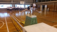 開脚跳びであれば「ドン、パン、ドンというリズムで跳ぶ。」、大きな台上前転では「足を伸ばしながら、後頭部、背中、腰、の順で跳び箱につくように回る。」というポイントを見つけることができました。来週は練習の成果を発表してもらう予定です。未来のオリンピアンを目指して、頑張れ多良木っ子!