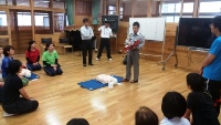 先生方1人1人が、心臓マッサージ、人工呼吸、そしてAEDの使用について訓練を行いました。今回の講習会で学んだことが絶対に使われないように、安全対策について職員で共通理解を図り、複数での監視体制と定期的な人員確認を行いながら、安全な水泳学習を行っていきます。