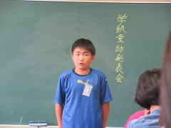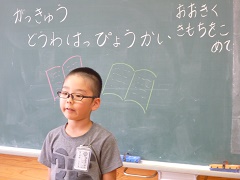 本日、1年生は学級内での童話発表会を行いました。初めての取り組みとあって、本選びから悩み、練習にも苦戦しながらも、保護者の方の協力を得て、どうにか発表することが出来ました。全体の場で、一人で本を暗記して発表するのは、とても勇気のいることです。しかし、ドキドキしながらも、全員が学級全員の前で発表をすることができました。学級から2名ずつの代表を選出し、いよいよ明日は学年童話発表会です。