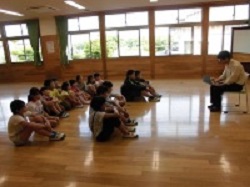 6月1日(水)に先生たちの心肺蘇生法講習会を行いました。来週の6月6日(月)から1週間をプール開き週間として、いよいよ水泳の学習が始まります。絶対にあってはいけないことですが、万が一心肺蘇生法が必要になった時のために、上球磨消防署の方に来ていただいて講習会を行いました。