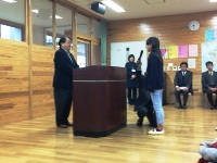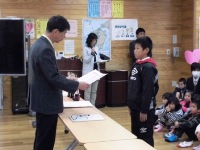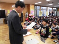 今日は、終業式がありました。2,4,6年生となかよし学級の子ども達の代表発表では、2学期に頑張ったことと、冬休みや3学期に向けての抱負が述べられました。多くの行事に目標をもって取り組んだ子ども達の成長が感じられる発表でした。冬休みも健康や安全に気をつけて過ごし、元気に3学期を迎えてほしいと思います。