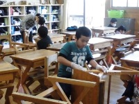 今日は、2年生が図工の時間に「ころころガーレ」という作品を作っていました。子ども達は、転がるエンジン(ゴルフボール、乾電池など)を持ってきており、飾り付けた空き容器をかぶせて、かわいらしいおもちゃが出来上がっていました。出来上がった作品は坂道で転がして遊び、エンジンによる動きの違いを楽しんでいた子ども達でした。