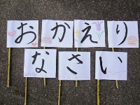 6年生が、無事に多良木小学校に帰ってきました。保護者の方には、「おかえりなさい」という旗を作って、温かく子どもたちを迎えていただきました。バスから降りてくる子どもたちの表情は、少し疲れも見えましたが、充実した旅行に満足した様子がうかがえました。