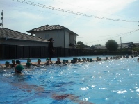 また、今日は保護者や地域の方に子どもたちの学習の様子を見に来ていただく「行こうデー」でした。ほとんどの学年は、プール開きを兼ねて行いました。暑い毎日が続く中、子どもたちはこの日を心待ちにしていました。新しくできた綺麗なプールに入ると、冷たい水の中で気もちよさそうに泳ぐ子どもたちでした。