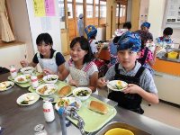 今日は、5年生が調理実習で、ゆで卵と青菜のおひたしを作っていました。今日の食材はどちらも、加熱する時間によって出来が変化します。そのため、子どもたちは教科書にある作り方をよく見ながら、火の強さや加熱する時間などをよく考え、話し合いながら調節していました。作った料理は、給食と一緒に食べました。どの班も、思い通りの出来栄えだったようで、美味しそうに食べる子どもたちでした。よくできました!多良木っ子!!