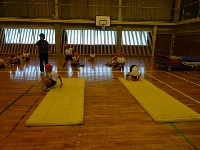 今日はあいにくの雨のため、体育館で幅跳びの練習を行いました。幅跳びは大きく分けて、助走、踏切り、空中姿勢、着地の4つの動作があります。その4つの動きを一つずつ練習できるように、体育館に高跳び用のマットを敷いて飛んだり、踏切板を使って踏切の練習をしたりしました。みんな初めの幅跳びの練習に楽しそうに取り組んでいました。より高く、より遠くまで飛べるように、しっかりと頑張ってほしいと思います。頑張れ多良木っ子!