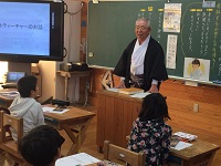 6年生では、道徳教育用郷土資料「熊本の心」から、国宝「青井阿蘇神社」を資料として授業を行いました。 授業の終末には、ゲストティーチャーとして、王宮神社の尾方恵さんをお招きし、人吉・球磨の文化遺産や伝統文化についてのお話を伺いました。尾方さんは、14年前まで青井阿蘇神社の宮司を務めておられ、国宝指定にも大きく関わっていらっしゃるということで、大変貴重なお話を伺うことができました。「地域の祭りや相撲大会、神楽等を知ったり体験したりして、それを語っていくことが、伝統を受け継いでいくことになる」という尾方さんの言葉が印象的でした。尾方さん、ありがとうございました。