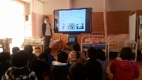 子どもたちは、グループになって1人2つずつ学校の自慢を出して、見せ合っていました。