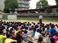 今日は、火災が起きた場合を想定した避難訓練が行われました。非常ベルが鳴ると、子ども達は緊急放送をよく聴き、速やかに運動場へ避難することができました。その後、消火訓練を行いました。万一の場合は自分の命を守ることができるように、今日の訓練をこれからもしっかりと覚えておいてほしいです。