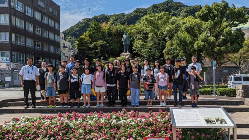 出発前に、西郷隆盛銅像前でクラス写真を撮りました。