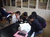 5年生が1・2組合同で理科の授業を行うのも今回で3回目。今日は、食塩やミョウバンが水に溶ける量には限界があるのか実験で確かめました。電子てんびんを使って食塩やミョウバンの重さを量りながら実験に取り組む子どもたちの表情は真剣そのもの。子どもたちからは、「次の実験も楽しみです。」という声が聞かれました。やる気満々の5年生です。
