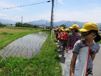 今日は、3年生が2回目の多良木町探検に出かけました。今日は南と北周りのコースを歩き、多良木町の北や南には田畑が多いことがわかりました。調べて分かったことは白地図にまとめ、友達と意見交換をしながら記録をとっていた子ども達でした。
