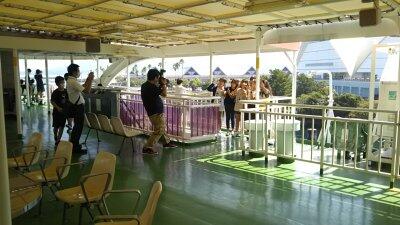 11時20分発のフェリーに乗って、桜島に向かいます。わずか15分間ではありますが、なかなかできない船の旅をみんな楽しんでいます。