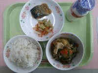 牛乳、麦ご飯、魚の柚子みそ煮、白菜漬け、肉じゃが