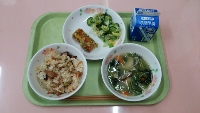 たこめし すいとん汁 ちくわのカレー揚げ じゃこサラダ 牛乳