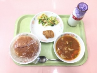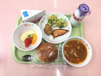 小学校の卒業お祝いバイキング給食です。6年生には、メインのおかずにミニサイズのとりのから揚げと、鮭の香草焼きがあります。デザートもありますので、6年間の給食を振り返りながら、楽しんで食べてほしいと思います。