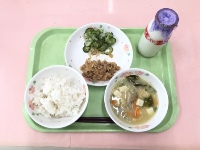 今日の給食には「豚肉の生姜焼き」があります。豚肉には、疲れを取ってくれる働きのある「ビタミンB1」が多く含まれています。しっかり食べることでみなさんの体の中から元気になります。今日の給食もよく噛んで残さず食べてくださいね。