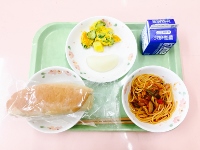今日の給食には「夏野菜スパゲティ」があります。トマト、ナス、ピーマンなど夏野菜をたっぷり使っています。また、サラダに使われているかぼちゃは、カロテンを含み、のどや鼻の粘膜を強くし、かぜに負けない丈夫な体を作る働きがあります。暑い日が続きますが、夏野菜をしっかり食べて、元気に過ごしましょう。