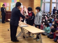 今日は、全校集会で個人の表彰がありました。その後「交通安全指導」もあり、交通安全お兄さんからこれまでお話があったことの、○×クイズ形式での確認がありました。これまでの話の内容を思い出しながら、交通安全についての問題に意欲的に取り組んでいた子ども達でした。
