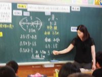今日は、6年1組で宮原先生による算数の研究授業がありました。「比とその利用」という単元で、リボン全体の長さを3:2に分けるための計算の仕方を考えました。子どもたちは、ノートに線分図や関係図をかき、比の値などのこれまでに学習したことを使って問題に取り組んでいました。