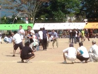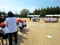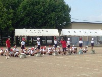 運動会全体練習(応援合戦)、かかし回収(5年生)
