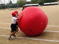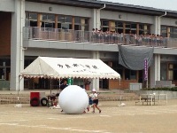 今日は1・2年生が、低学年のリレー競技である大玉転がしの練習をしていました。自分の身長よりも大きい玉を懸命に押しながら走る姿が印象的でした。4年生もベランダから声援を送ってくれました。本番も白熱した戦いになりそうです。
