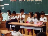 今日は、2時間目に1年2組の子どもたちが洗濯物のたたみ方について学習していました。はじめに、名人になった子たちが、正しいたたみ方の説明を実演を交えながらしてくれました。その後子どもたちは各班に分かれ、名人に教わったたたみ方の練習をしました。今回学習したことを生かして、家庭でも洗濯物たたみの手伝いに取り組んでほしいです。