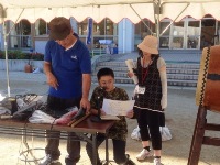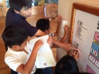 また、5年生が米づくりをしている田に立てるかかしと看板が完成しました。今日の昼休みにJAの方が回収に来られました。台風が通過した後に設置される予定です。
