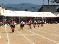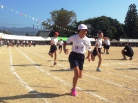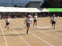 また、運動場では1年生が徒走の練習をしていました。走る前に台の上に乗り、大きな声で自分の名前をはきはきと言うことができていました。その後ピストルが鳴ると、ゴールまで全力で走る子どもたちでした。運動会当日は、1年生をはじめ全児童の頼もしい姿をご覧いただけると思います。