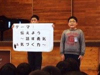 今日は、4時間目に人権集会がありました。はじめに、多良木っ子全員で今月の歌である「すてきな友達」を歌い、運営委員会による人権子ども集会の内容と、参加しての感想の発表がありました。その後、各学級がそれぞれ決めた学級人権目標を発表しました。校長先生からは、「挨拶」の言葉の意味から、相手を尊重し合うことの大切さについての話がありました。この集会で考えたことや宣言したことを、これからの生活に生かしてほしいです。