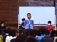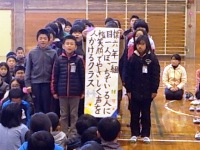 表彰の後は、中山先生から「多良木っ子4つのおこない」の一つである、挨拶についての話がありました。友だちや先生、地域の人などに会った時には、自分からさわやかに挨拶することの大切さを改めて確認した子ども達でした。