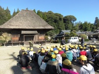 今日は、6年生が総合的な学習の時間に多良木町の観光コースを紹介するパンフレットを作成するため、町内にある文化財等を訪れました。子ども達は王宮神社や青蓮寺、太田家住宅などの県や町指定の重要文化財を見学して周り、説明を聞いて調べたり、写真を撮ったりしていました。その後、多良木町を一望できる妙見野自然の森展望公園を訪れ、小学校の位置などの多良木町の地理を確認しました。穏やかな天気のもと、充実した学習と資料収集ができたようです。