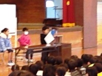 今日は、24日(水)が終業式ということもあり、お楽しみ会が行われたクラスも多かったようです。4年生では、今学期で転出する児童とのお別れ会も兼ねて、お楽しみ会が行われました。ものまねやうた、ダンス、ビンゴゲームなど盛り上がっていたようです。