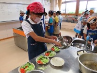 今日は、5年生が調理実習で「コンビネーションサラダ」をつくっていました。子ども達は野菜を丁寧に洗い、包丁を上手に使って千切りやくし切りなどをしていました。出来上がったサラダは給食と一緒に食べ、嬉しそうな表情の子ども達でした。