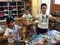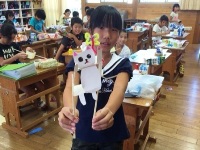 今日は、4年生が図工の学習で牛乳パックを使って製作をしていました。簡単な動く仕組みを使って、子ども達はいろいろな発想をして作品を作っていました。カメラを向けると、自分の作った作品を嬉しそうに動かして見せてくれた子ども達でした。