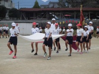 今日から、運動会の全体練習が始まりました。子ども達全員が運動場に集合し、入場行進の練習と、開会式の流れの確認をしました。入場行進では、腕を大きく振って足を高くあげながら、列を揃えて行進する練習をしました。入場行進を、運動会の一番初めの演技という意識をもって、懸命に練習に取り組む子ども達でした。