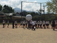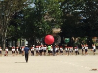 今日の全体練習では、全校競技の練習がありました。今年から新たにプログラムに入った全校競技で、紅白に分かれて大玉運びを行います。練習とはいえ、子ども達は皆で息を合わせて大玉を運び、白熱した戦いが繰り広げられました。