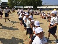 また、今日の運動会全体練習では、大綱引きの練習がありました。低中高いずれの学年の戦いでも、子ども達は精一杯声を出して綱を引き、とてもいい対戦が行われました。はたして本番は赤白どちらが勝つのか、とても楽しみです。