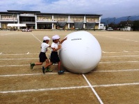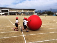 今日は、低学年と中学年の団体競技の練習の様子をお知らせします。低学年の子ども達は、大玉リレーをしていました。自分の身体よりも大きな玉を、精一杯押して転がしていた子ども達でした。中学年の子ども達は、タイヤ引きをしていました。ピストルの合図で一斉にタイヤに駆け寄り、我先にとタイヤを運んでいました。競技の後半では1つのタイヤをめぐり、熱い戦いが繰り広げられていました。