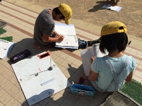 今日は、3年生が理科の学習で、影と太陽の位置を観察していました。子ども達は、影の位置をホワイトボードに記録し、時間によって影が動いていることや、遮光版を使って太陽の位置を確認することで、太陽の動きに合わせて影も動いていることを見出していました。理科の観察や実験に意欲的に取り組んでいる子ども達です。