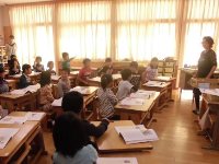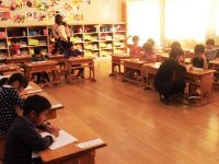 今日は、1年1組で余利先生による算数の研究授業がありました。くりあがりのあるたし算の授業で、子ども達は数図ブロックを動かしながら、10のまとまりをつくると答えを出すのが分かりやすいことを理解していました。どの子も真剣に学習に取り組み、懸命に考える姿が印象的でした。