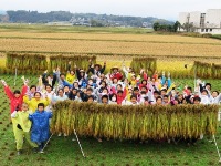 また、子ども達が作った「かかしコンテスト」の結果発表もありました。結果は見事1位と2位を受賞し、いちごとトマトを賞品に、参加賞に米をいただきました。