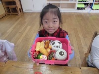今日は、弁当デーでした。子ども達は、自分が出来る範囲でお弁当づくりにチャレンジしてきました。子ども達が持ってきたお弁当を見てみると、キャラクターを模したものなど、どれもかわいいお弁当ばかりでした。お家の人と一緒に買い物に行ったり台所で手伝いをしたりして、子ども達は楽しんでお弁当づくりに取り組んでいるようです。お家の方の御協力、ありがとうございます。