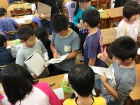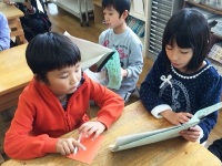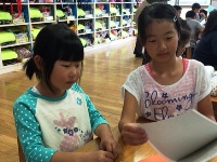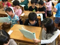 今日は、2年生が国語の学習で自分で作ったお話を、1年生に読み聞かせをしてくれました。2年生は3枚の絵から発想してオリジナルの物語を作っていて、子ども達の個性豊かな面白い作品ができていました。1年生は2年生が読む話に聞き入り、物語を楽しんでいました。