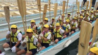 天候が回復し、集団宿泊教室のメインイベント、ペーロン船の体験を行いました。子どもたちは、声を枯らし、手にはまめを作りながら懸命に漕ぎました。活動を通して、協力することや最後までやり遂げることの大切さを学ぶことができました。