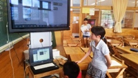 昼休みにグループに分かれて、編集作業を行っています。子どもたち同士で、ああでもない、こうでもないと言いながら、和気あいあいと頑張っています。どんなCMが出来上がるのかとても楽しみです。頑張れ多良木っ子!