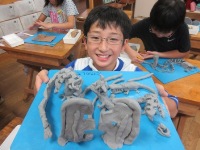 図工の時間に粘土を使って、入口から広がる世界を表現しました。雨が降っていたこともあり、「昼休みもしてもいいですか。」と尋ねてきて、やる気が満ちあふれていました。6時間目の図工の時間は真剣に作っていたため、黙々と自分の世界を表現することに夢中になって手を動かしていました。出来上がった作品は友達と見せ合いながら、様々な「入口」から広がる不思議な世界を鑑賞し合いました。