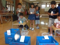 2年生の生活科では、身のまわりにあるものを使っておもちゃを作った「おもちゃ作り」の学習が始まりました。今日は、担任の作ったおもちゃでおもいっきり遊んでみました。おもちゃを一つ紹介するたびに、「おお~!」っと歓声をあげ、目をキラキラさせる子どもたち。時間いっぱい遊んで、アイディアを膨らませることができたようです。これから、おもちゃの計画書を書き、作って・・・最後には「おもちゃランド」を開いて、1年生を招待する予定です。