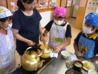 家庭では炊飯器で炊くことが多いごはんですが、今回は中の様子が見える鍋を使って、火加減を調節しながら調理をしました。時間や火加減に気をつけながら、真剣なまなざしで調理に取り組んでいました。